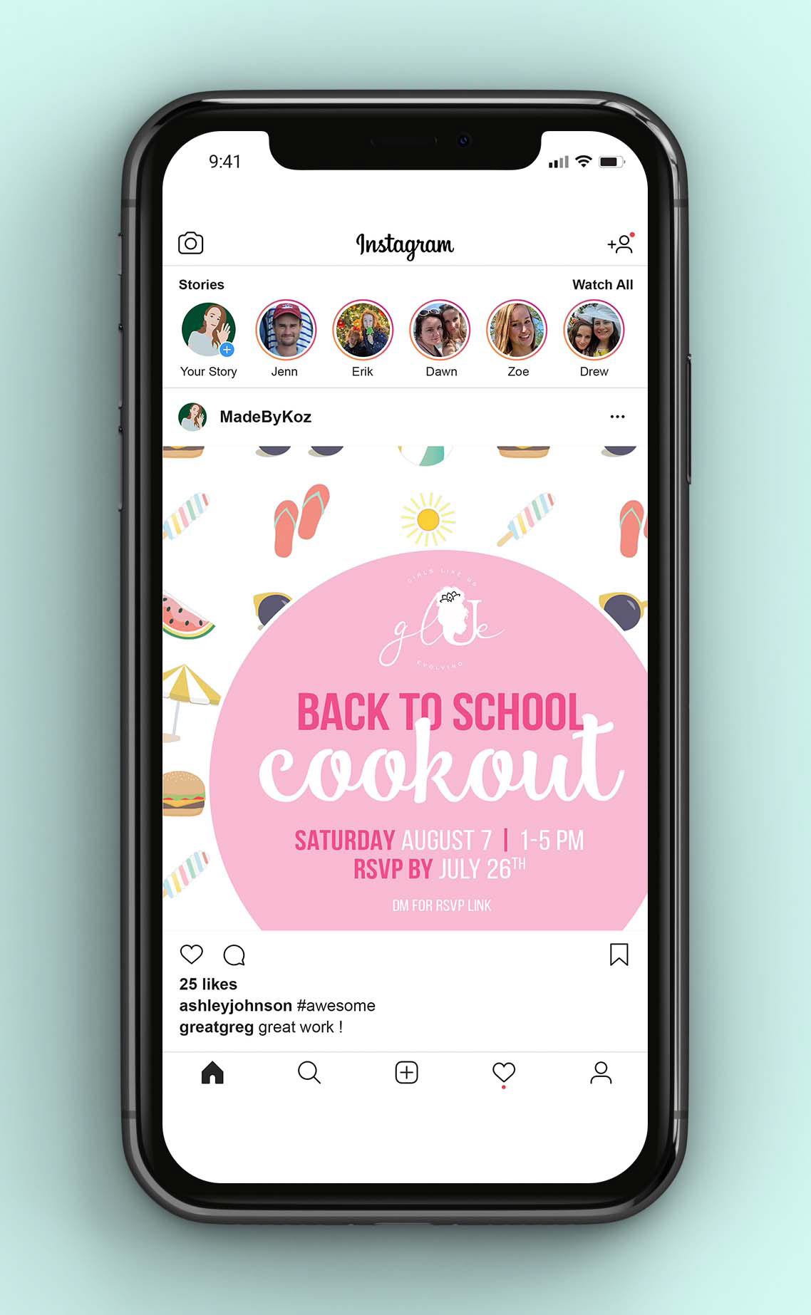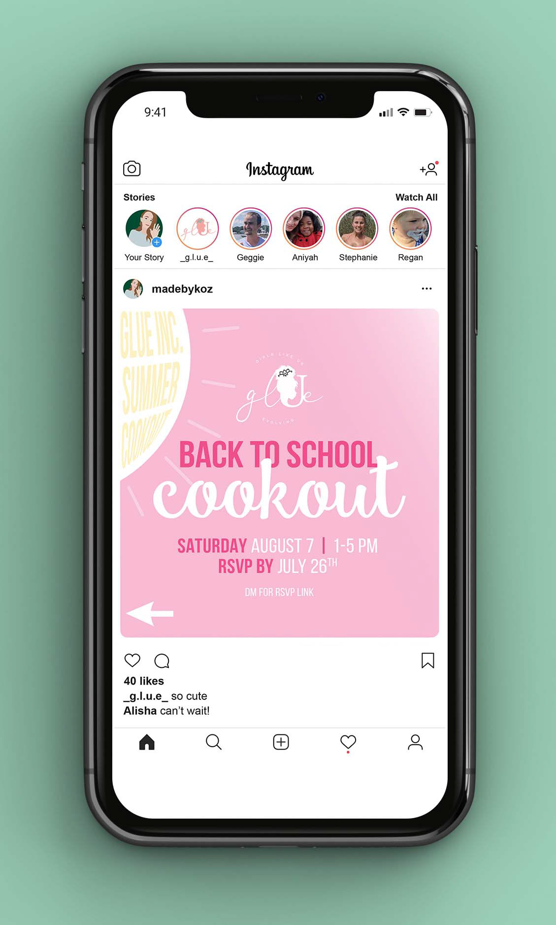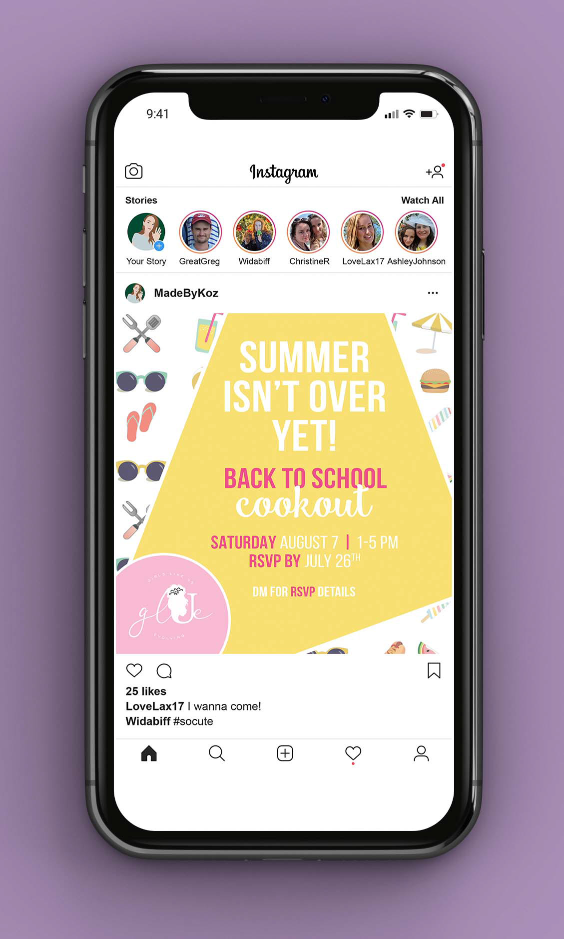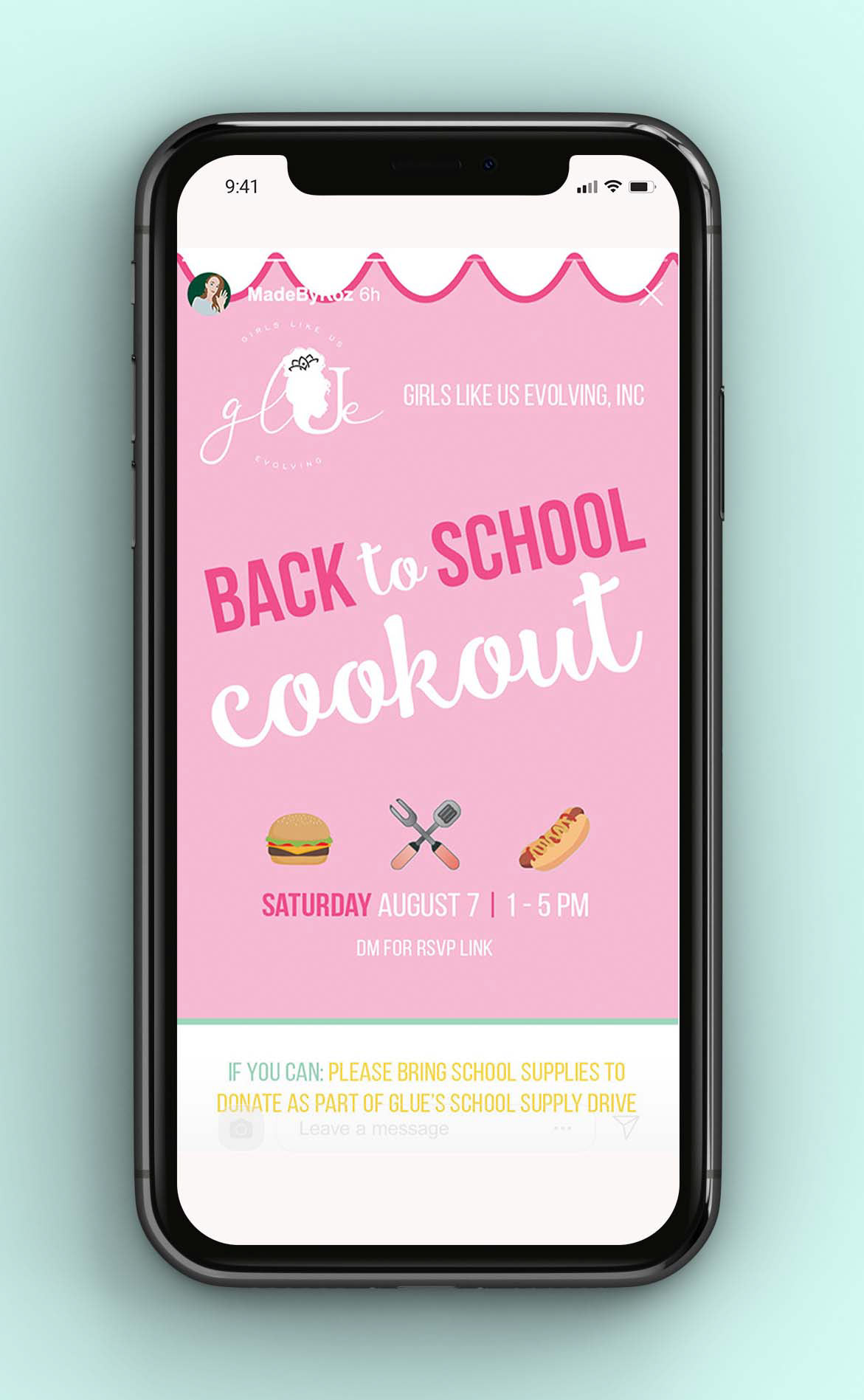 The back to school cookout is one of 9 group sessions throughout the year to bring all the mentors and mentees together. The organization wanted to get more involvement by promoting the event on instagram through feed posts and stories. Flyers were also created and sent to parents by email.