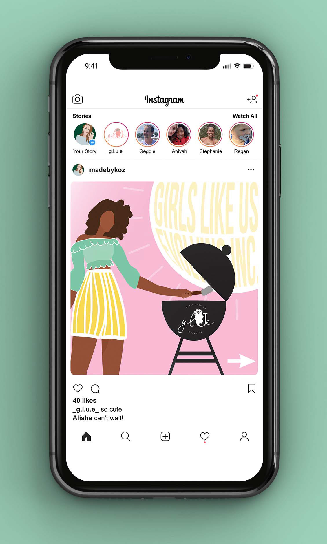 Event advertising for the GLUE instagram feed with a coordinating instagram story. This is the third set of ads, out of four sets, for the GLUE instagram. Each ad is designed to be released as a weekly promotion the month before the event.